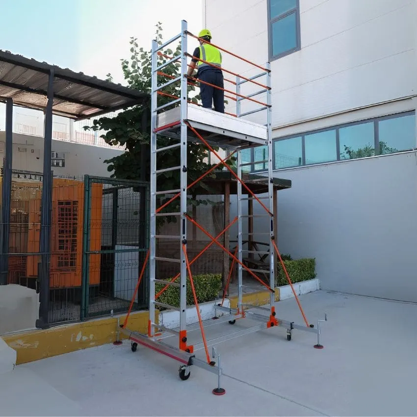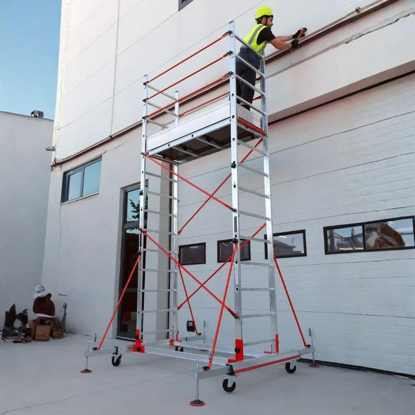 El aluminio es más ligero y resistente a la corrosión, lo que facilita el transporte y alarga la vida útil del andamio.