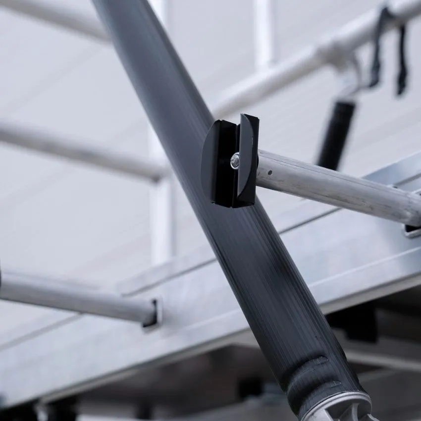 Este andamio de aluminio portátil plegable (120×60 cm) combina resistencia, ligereza y facilidad de montaje. A diferencia de un andamio portátil convencional, puede ser montado por una sola persona gracias a su sistema Flash-Safe, lo que ahorra tiempo y esfuerzo. Además, su diseño plegable lo hace mucho más práctico para transportar y almacenar.