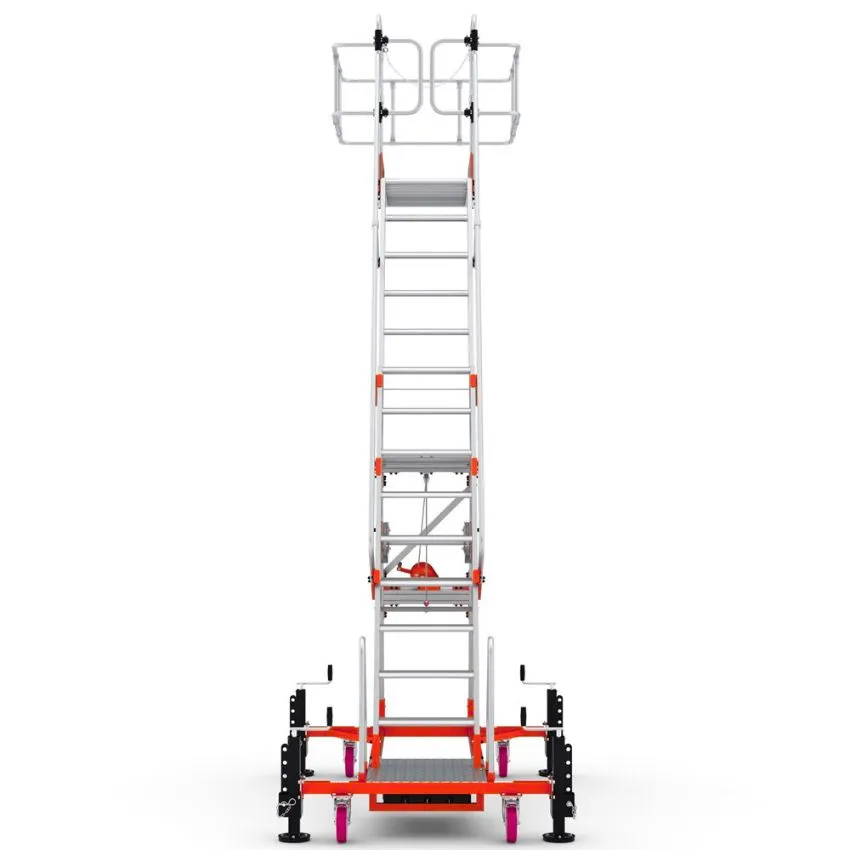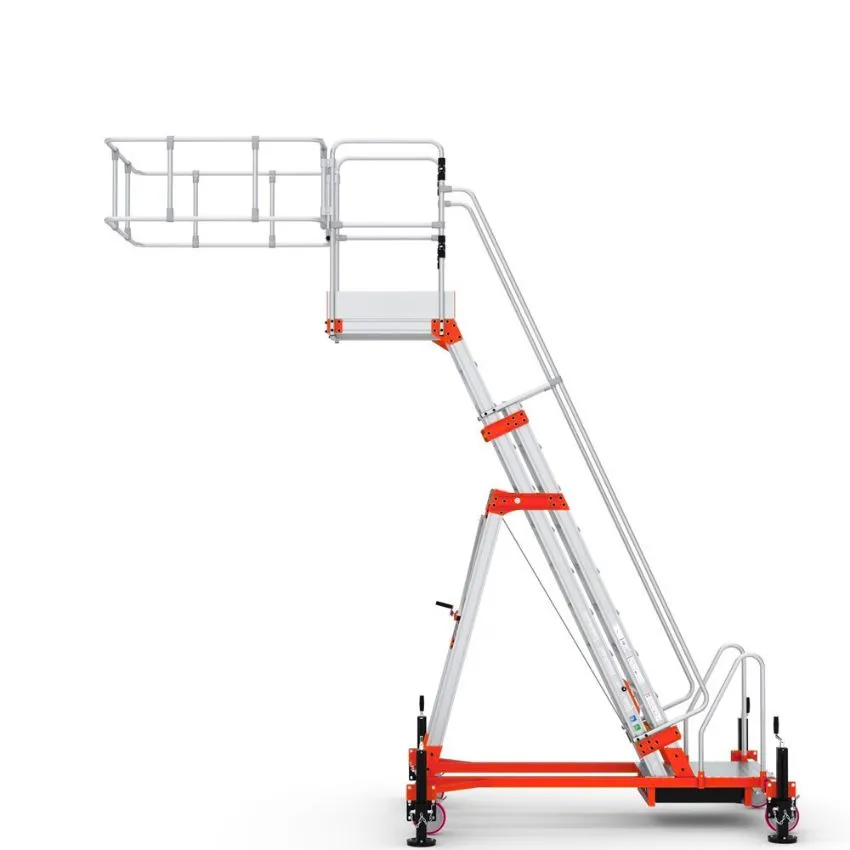 Gracias a elementos como los peldaños antideslizantes, las puertas abatibles Safe Return y la sólida estructura conforme a normativa, el trabajador está protegido en todo momento. Minimizarás los riesgos de caídas y accidentes laborales.Acceso cómodo a diferentes alturas
